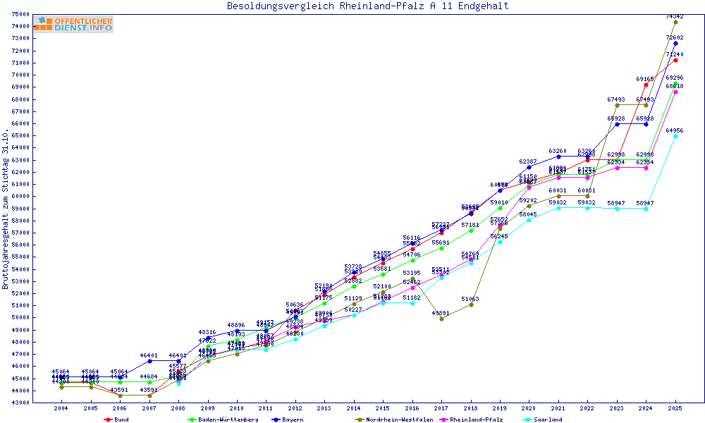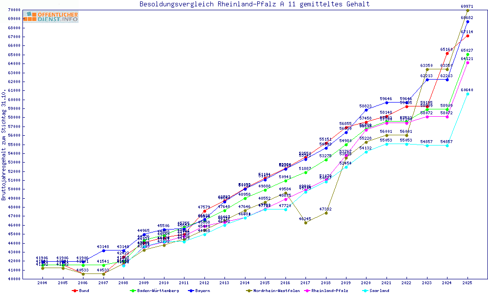 | Besoldungsvergleich A 11 im Jahr 2025 | gemitteltes Gehalt | ||||||