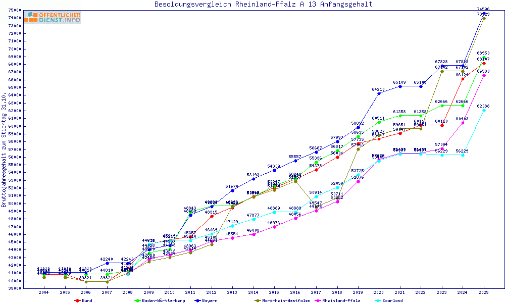 | Besoldungsvergleich A 13 im Jahr 2025 | Anfangsgehalt | ||||||
