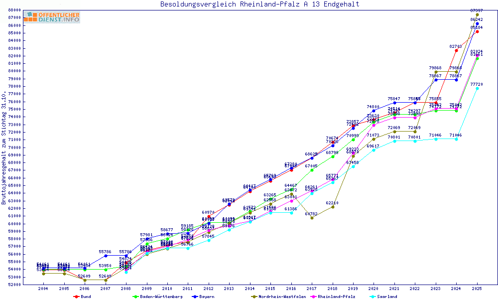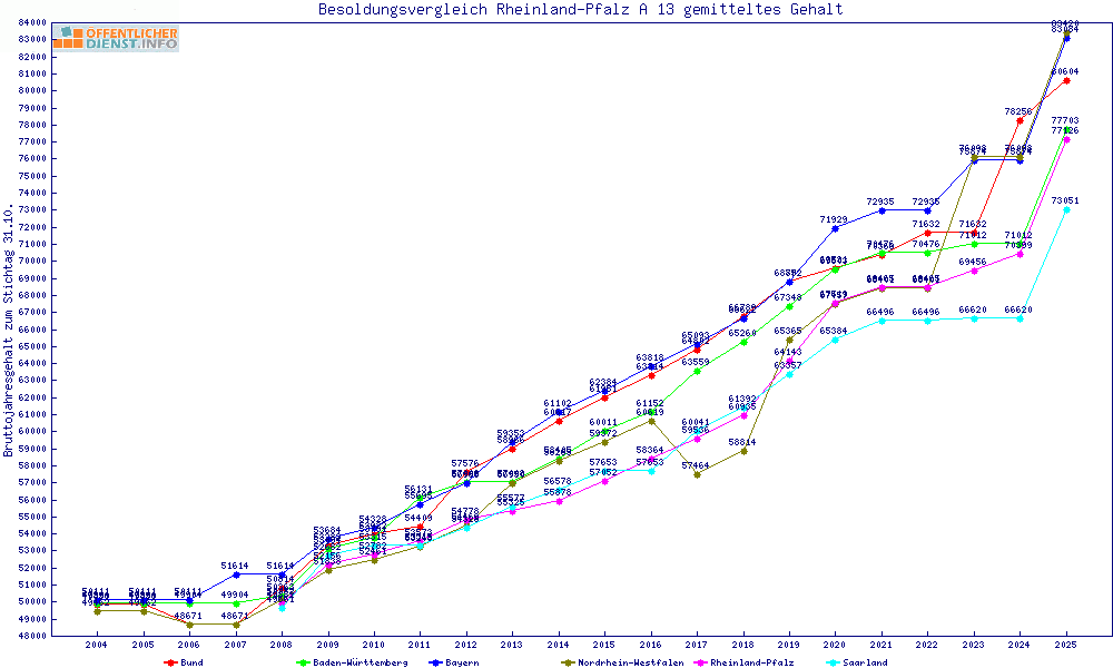 | Besoldungsvergleich A 13 im Jahr 2025 | gemitteltes Gehalt | ||||||