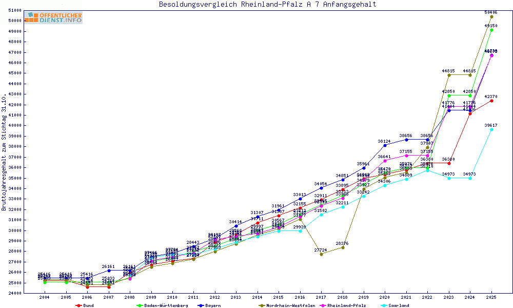 | Besoldungsvergleich A 7 im Jahr 2025 | Anfangsgehalt | ||||||