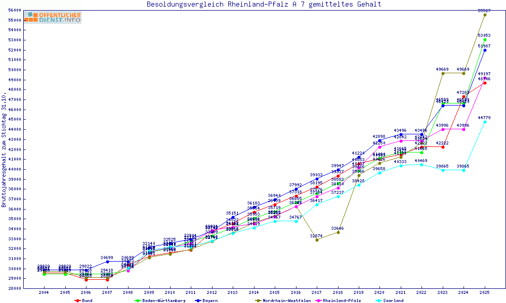| Besoldungsvergleich A 7 im Jahr 2025 | gemitteltes Gehalt | ||||||