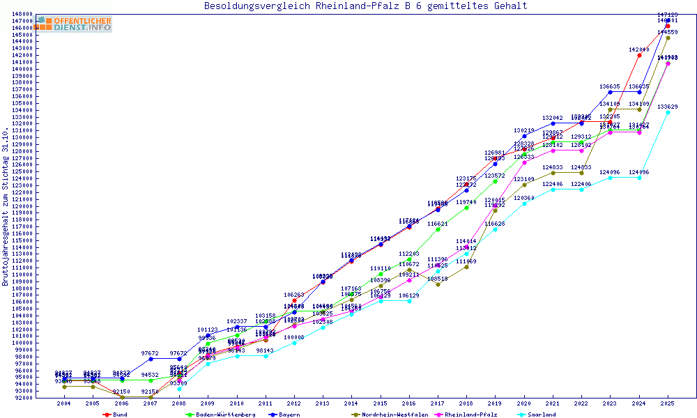 | Besoldungsvergleich B 6 im Jahr 2025 | gemitteltes Gehalt | ||||||
