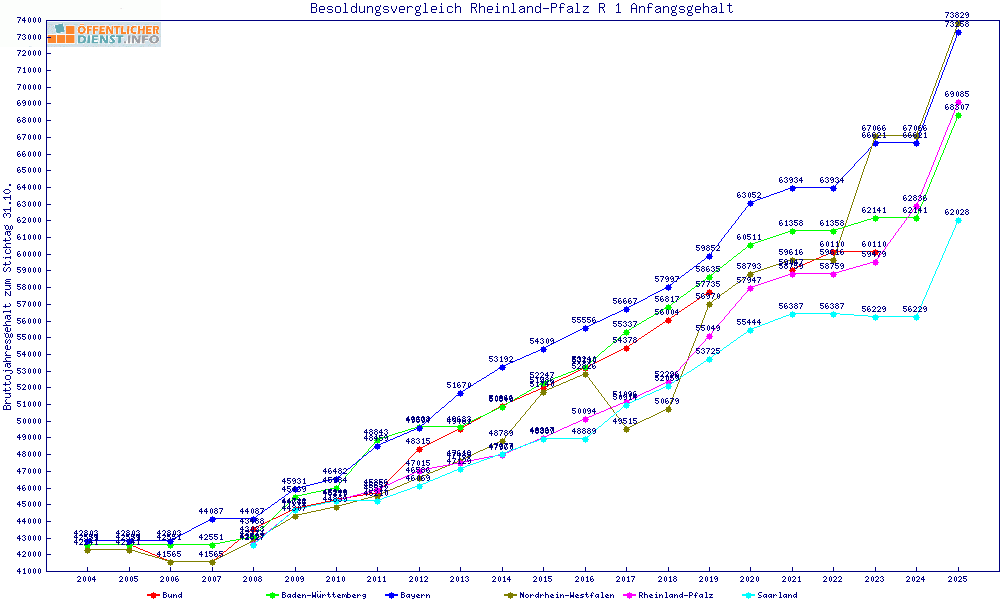 | Jahresgehalt brutto | im Vergleich mit Rheinland-Pfalz |
