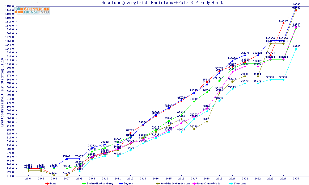 | Besoldungsvergleich R 2 im Jahr 2025 | Endgehalt | |||||||