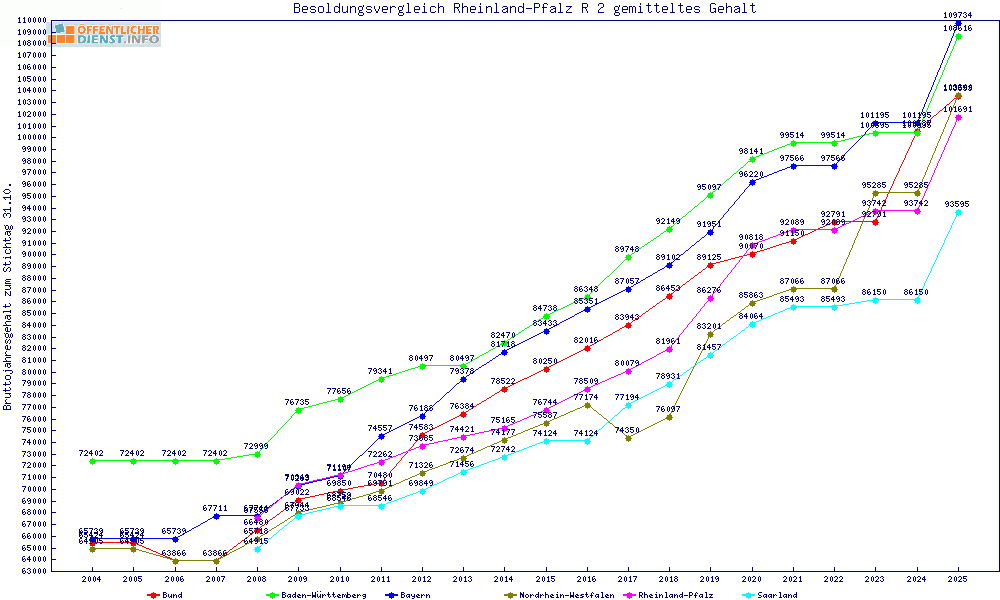 | Besoldungsvergleich R 2 im Jahr 2025 | gemitteltes Gehalt | ||||||