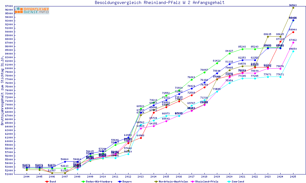 | Jahresgehalt brutto | im Vergleich mit Rheinland-Pfalz |
