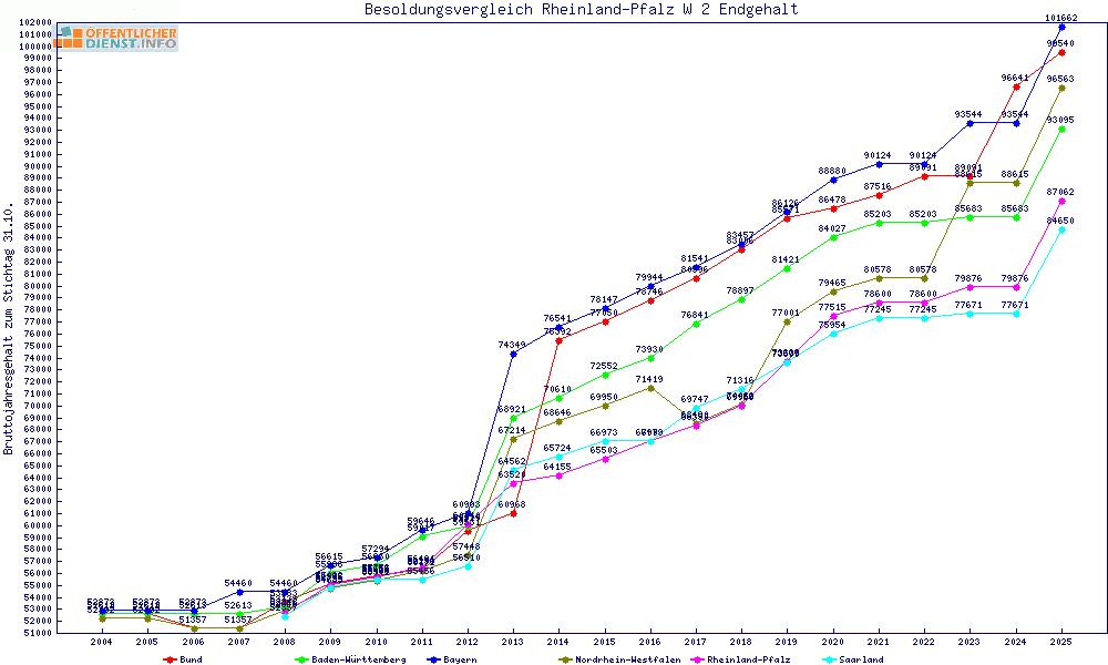 | Besoldungsvergleich W 2 im Jahr 2025 | Anfangsgehalt | ||||||