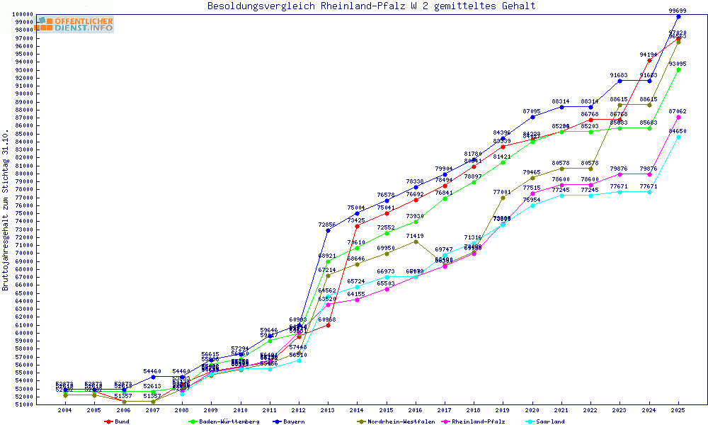 | Besoldungsvergleich W 2 im Jahr 2025 | gemitteltes Gehalt | ||||||
