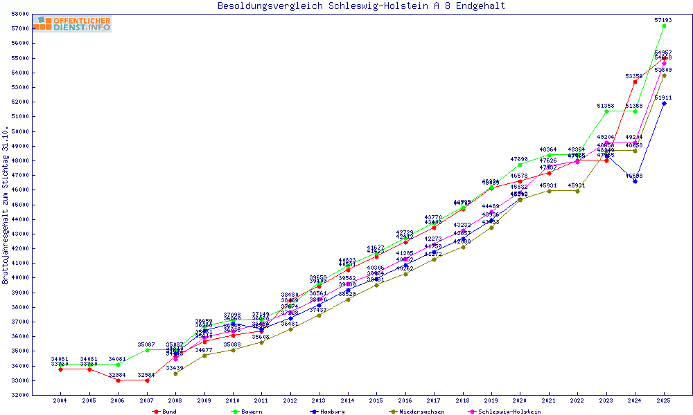 | Besoldungsvergleich A 8 im Jahr 2025 | Endgehalt | |||||||