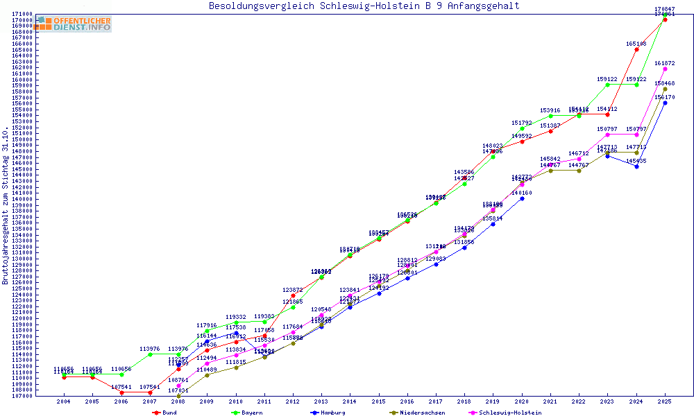 | Besoldungsvergleich B 9 im Jahr 2025 | gemitteltes Gehalt | ||||||