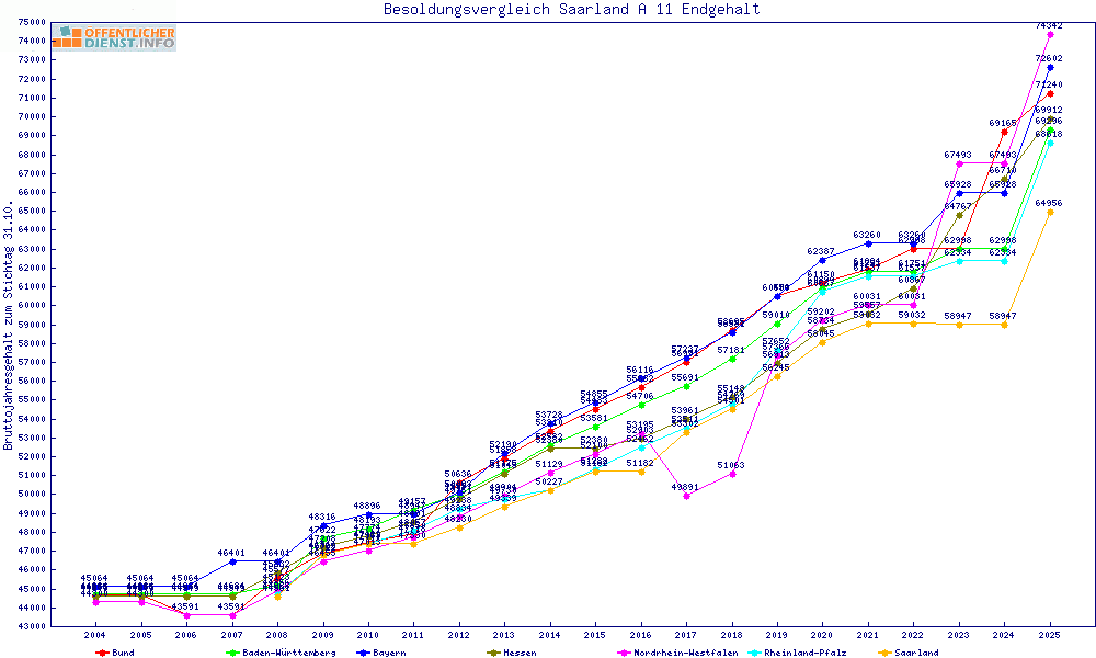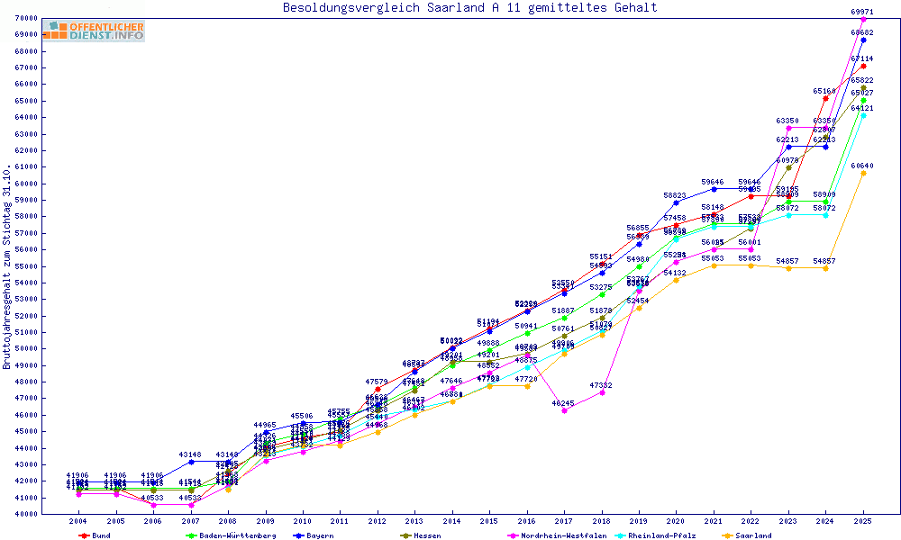 | Besoldungsvergleich A 11 im Jahr 2025 | gemitteltes Gehalt | ||||||