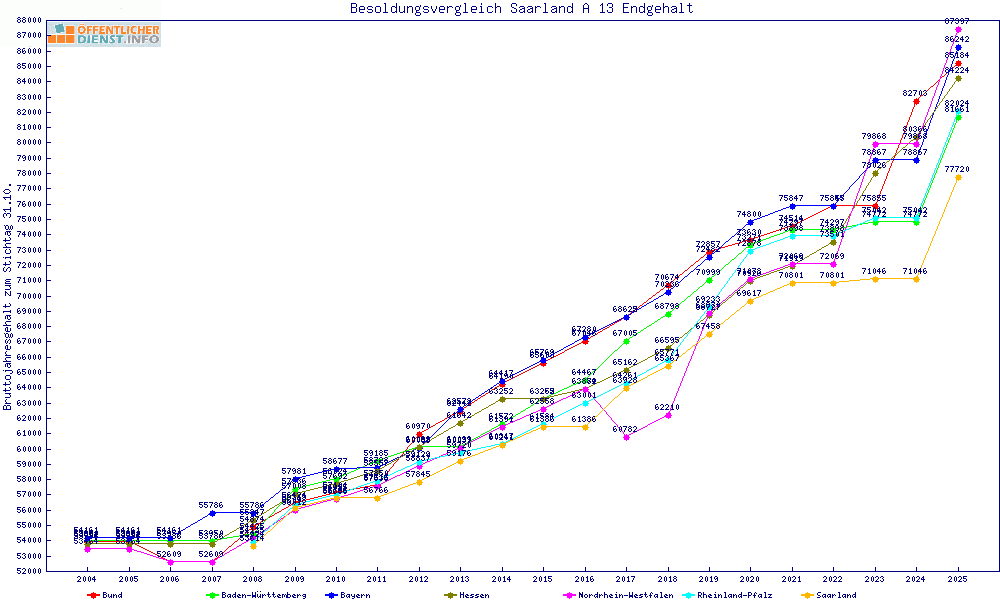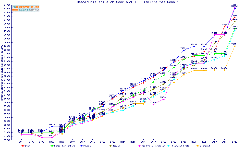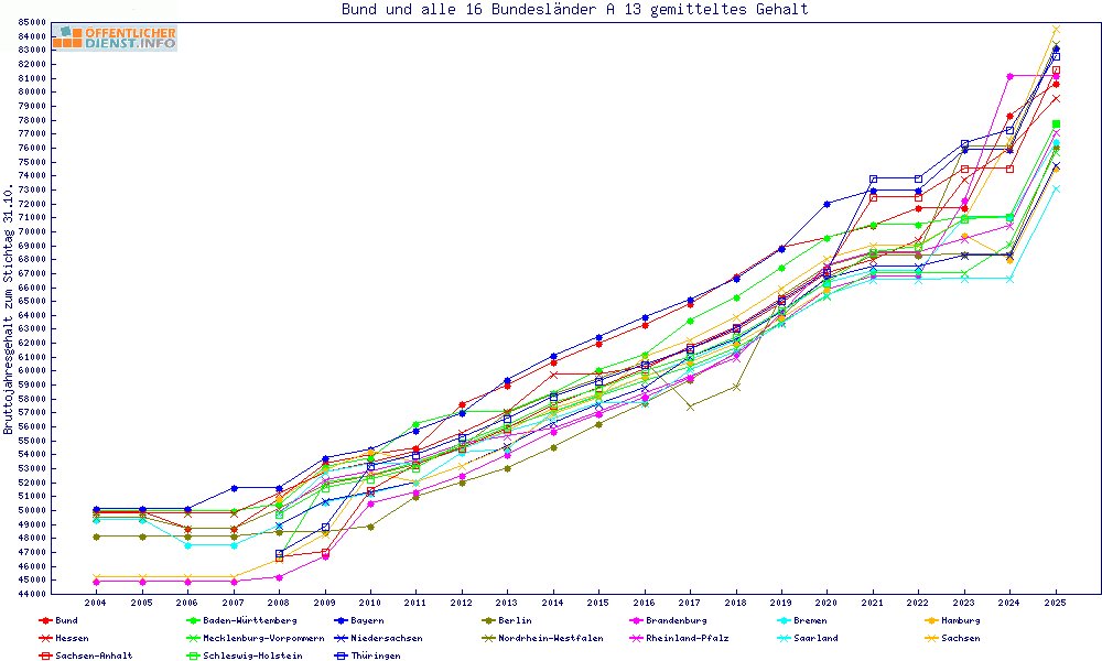 | Besoldungsvergleich A 13 im Jahr 2025 | gemitteltes Gehalt | ||||||