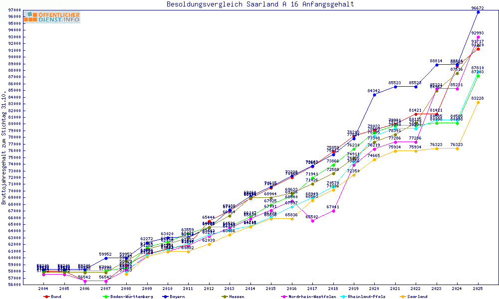 | Besoldungsvergleich A 16 im Jahr 2025 | Anfangsgehalt | ||||||