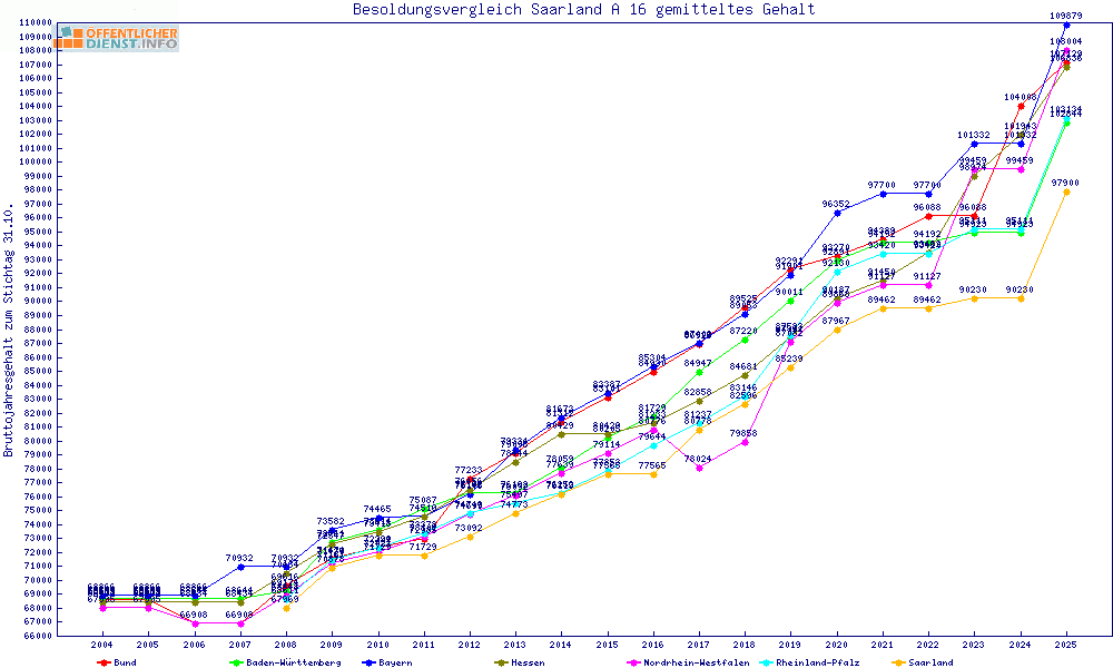 | Besoldungsvergleich A 16 im Jahr 2025 | gemitteltes Gehalt | ||||||