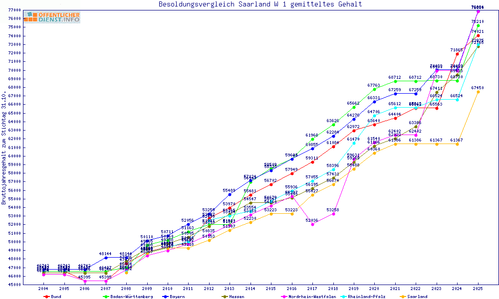 | Besoldungsvergleich W 1 im Jahr 2025 | gemitteltes Gehalt | ||||||