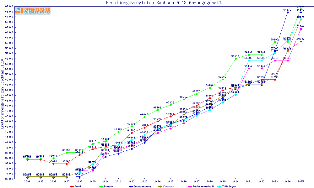 | Besoldungsvergleich A 12 im Jahr 2025 | Anfangsgehalt | ||||||