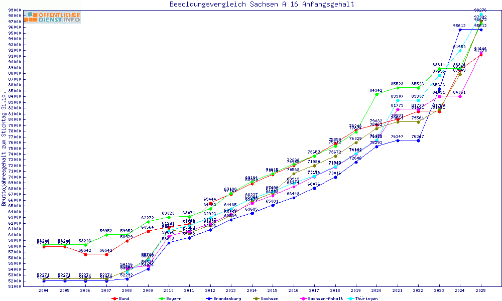 | Besoldungsvergleich A 16 im Jahr 2025 | Anfangsgehalt | ||||||