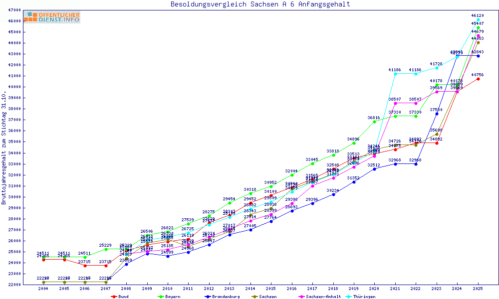| Besoldungsvergleich A 6 im Jahr 2025 | Anfangsgehalt | ||||||