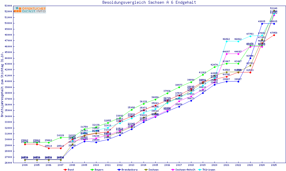 | Besoldungsvergleich A 6 im Jahr 2025 | Endgehalt | |||||||