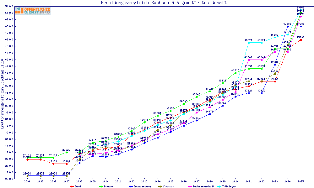 | Besoldungsvergleich A 6 im Jahr 2025 | gemitteltes Gehalt | ||||||