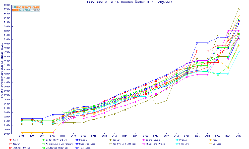 | Besoldungsvergleich A 7 im Jahr 2025 | Endgehalt | |||||||