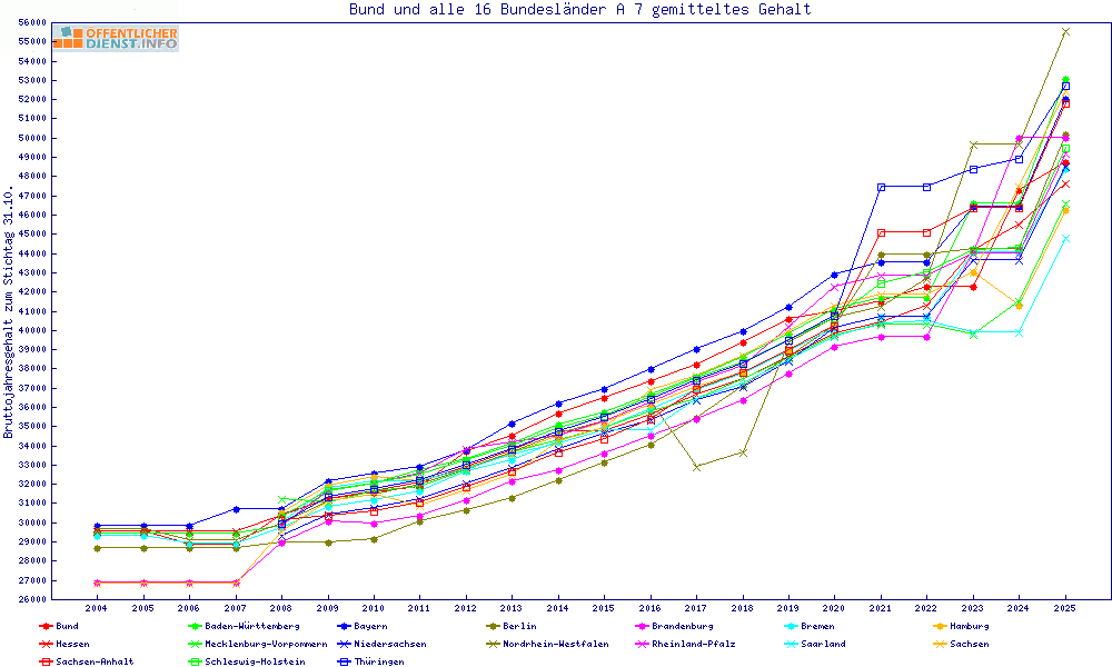 | Besoldungsvergleich A 7 im Jahr 2025 | gemitteltes Gehalt | ||||||