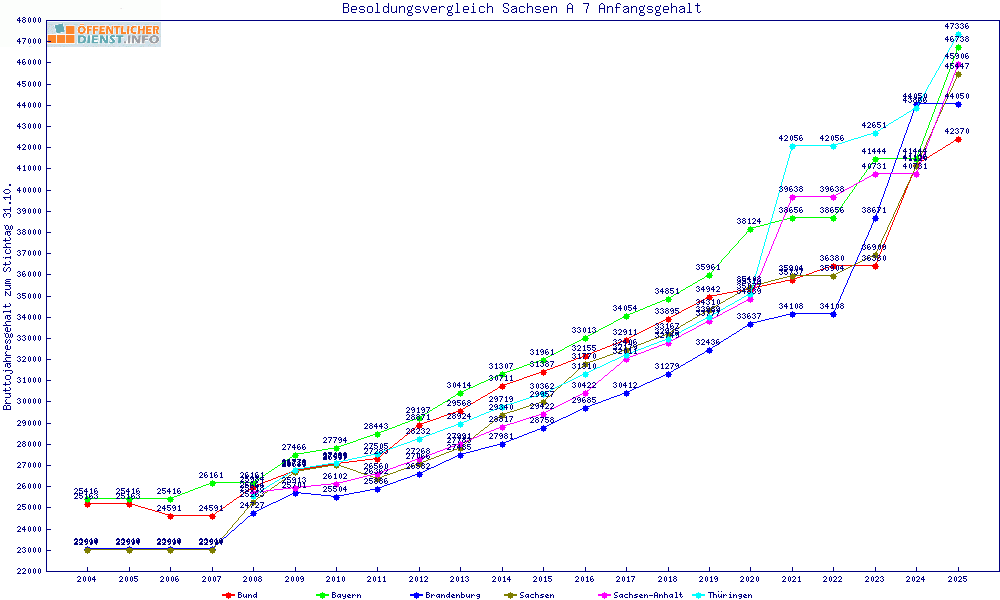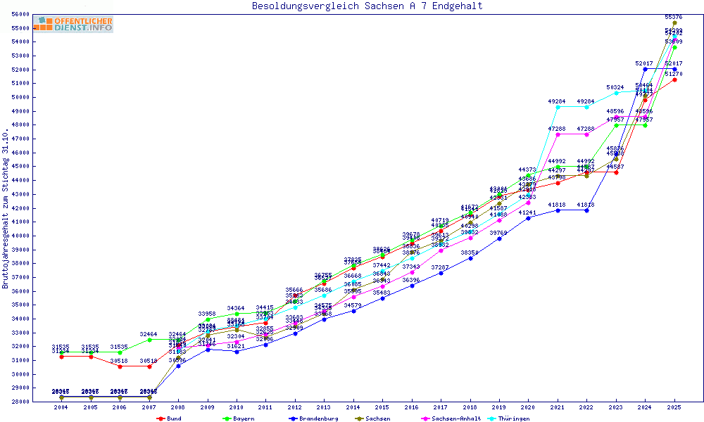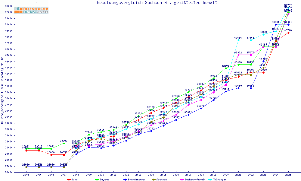 | Sachsen | 55.377 € | +3510 € | +6.8% | 24 Jahre | ||||