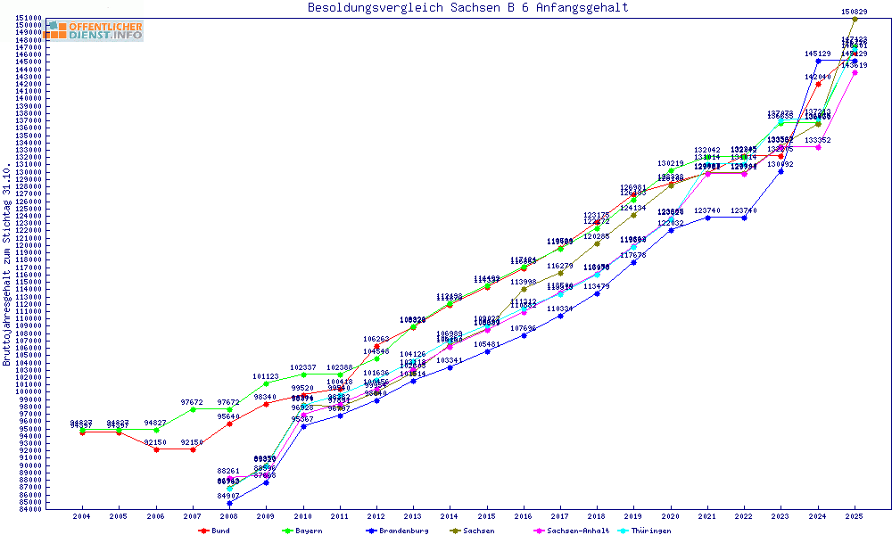 | Besoldungsvergleich B 6 im Jahr 2025 | Anfangsgehalt | ||||||
