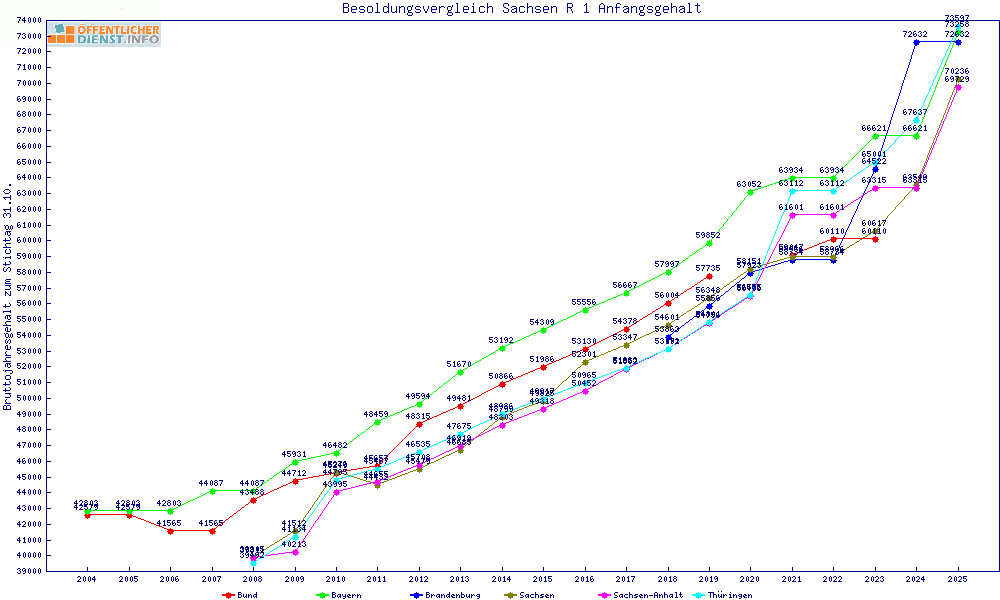 | Sachsen | 108.788 € | +6611 € | +6.5% | 31 Jahre | ||||