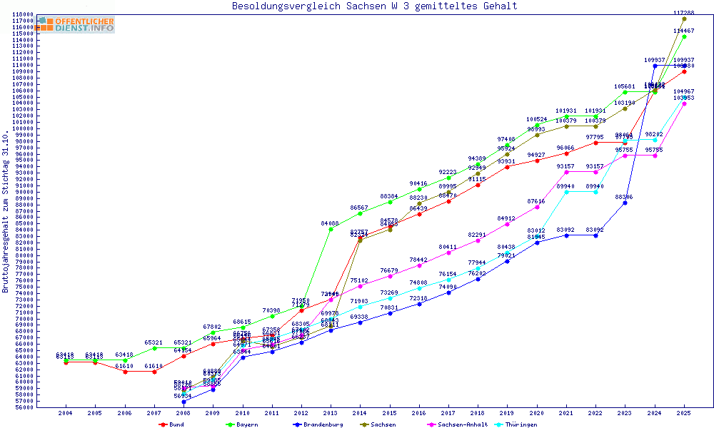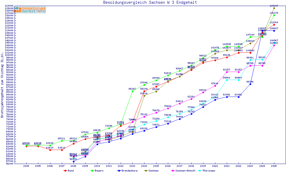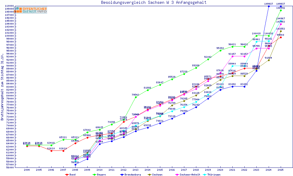 | Sachsen-Anhalt | 103.954 € | +2400 € | +2.4% | +3000 € | +3.0% | ||