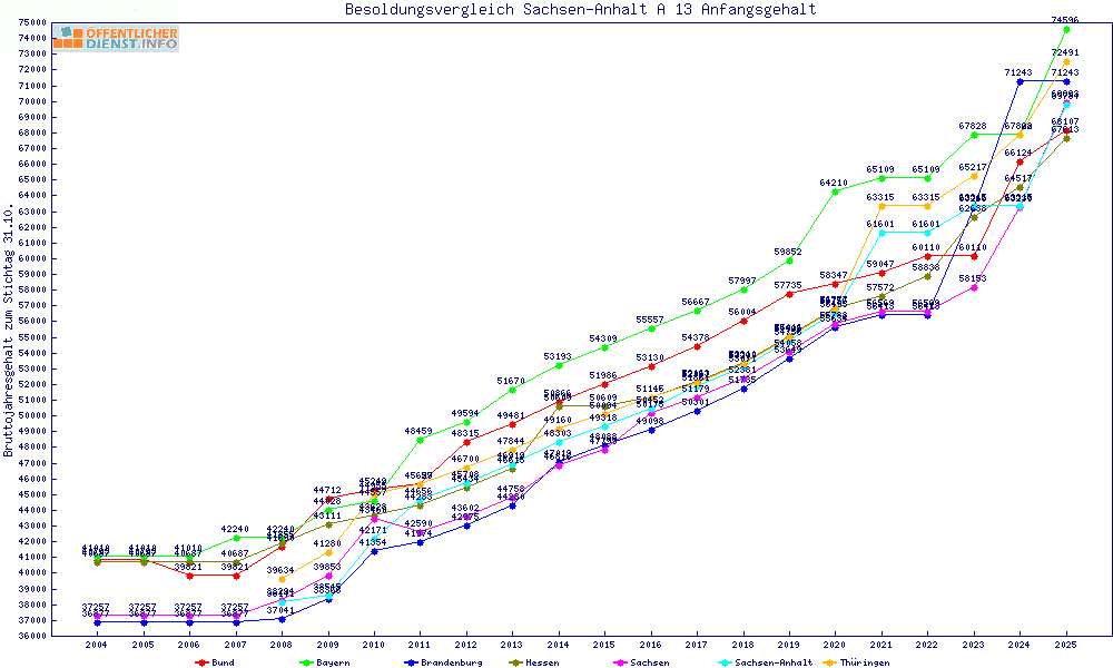 | Sachsen-Anhalt | 85.916 € | +2627 € | +3.2% | 23 Jahre | ||||