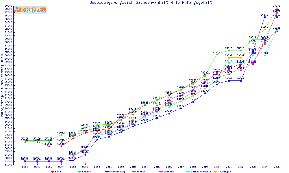 | Besoldungsvergleich A 16 im Jahr 2025 | Anfangsgehalt | ||||||