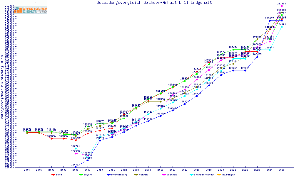 | Besoldungsvergleich B 11 im Jahr 2025 | gemitteltes Gehalt | ||||||