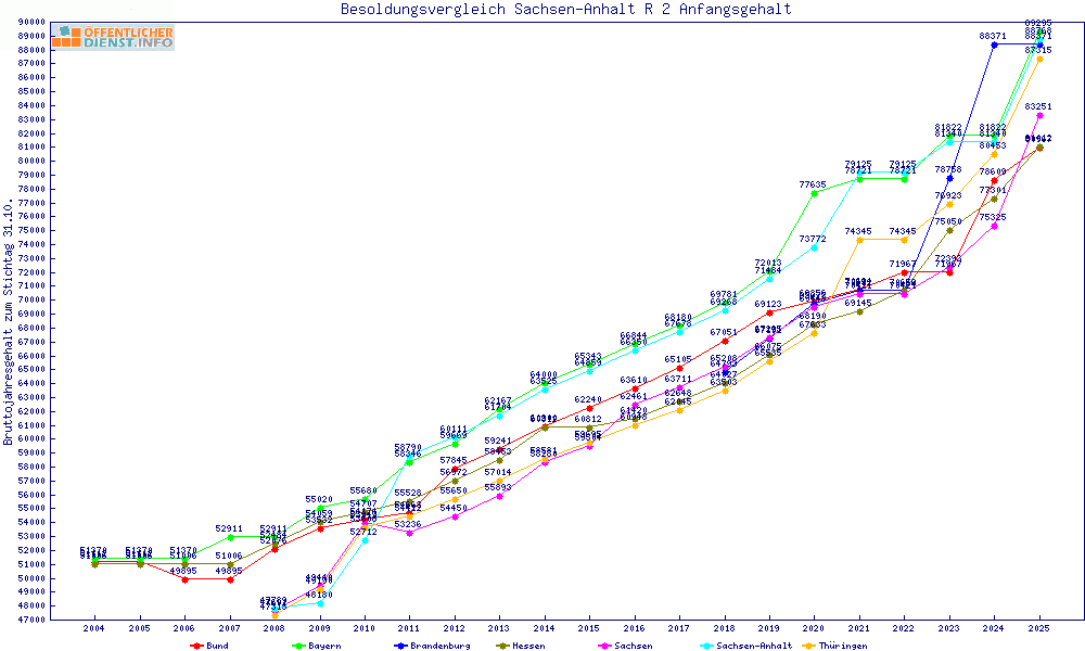 | Besoldungsvergleich R 2 im Jahr 2025 | Anfangsgehalt | ||||||