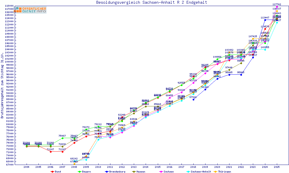 | Besoldungsvergleich R 2 im Jahr 2025 | gemitteltes Gehalt | ||||||
