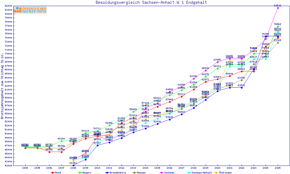 | Besoldungsvergleich W 1 im Jahr 2025 | Anfangsgehalt | ||||||