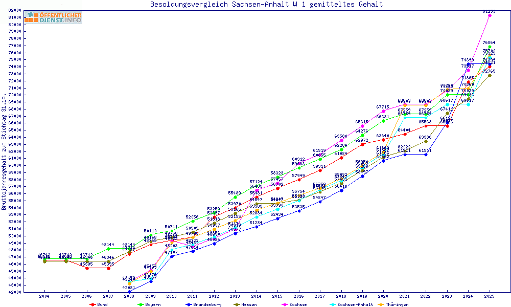 | Sachsen-Anhalt | 75.324 € | +2268 € | +3.1% | ||||
