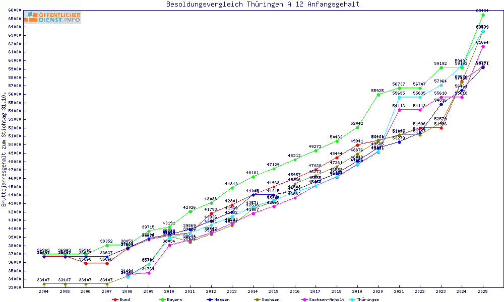 | Besoldungsvergleich A 12 im Jahr 2025 | Anfangsgehalt | ||||||