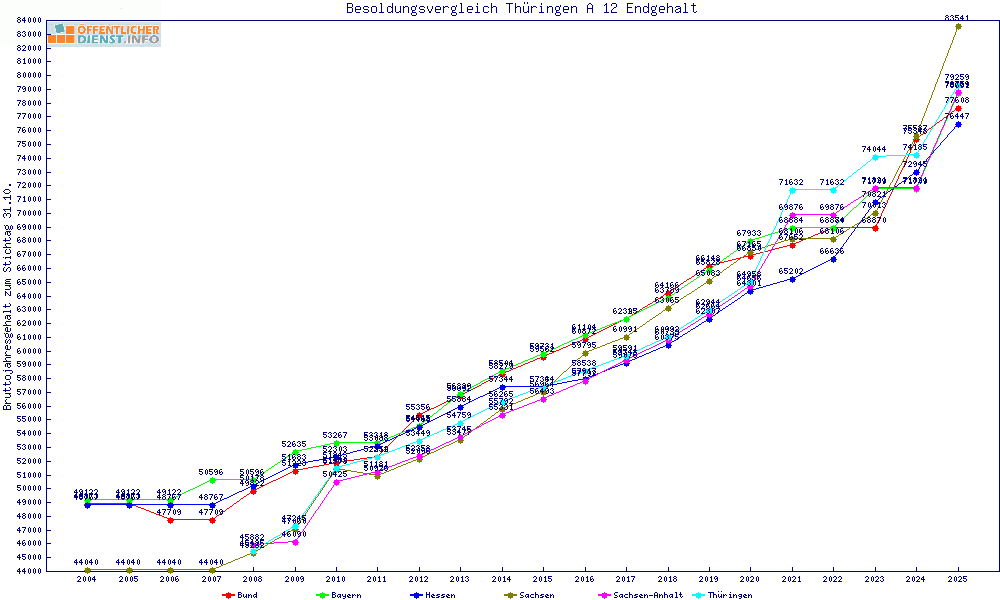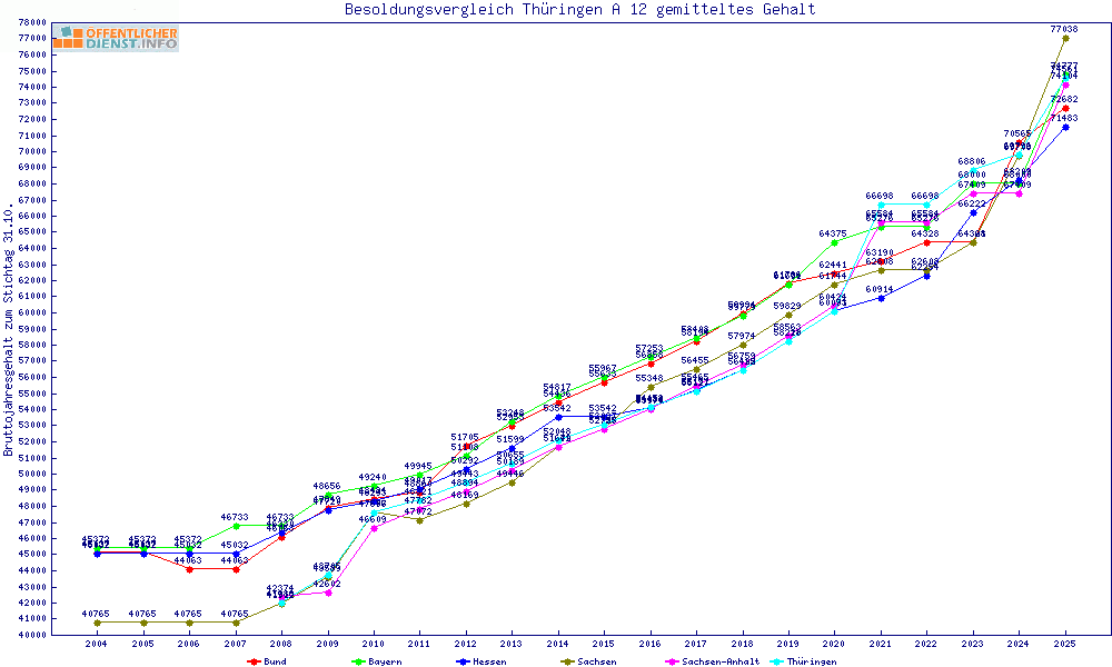 | Besoldungsvergleich A 12 im Jahr 2025 | gemitteltes Gehalt | ||||||