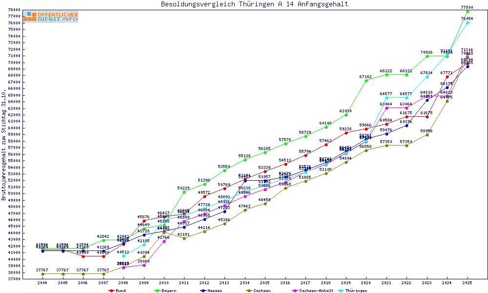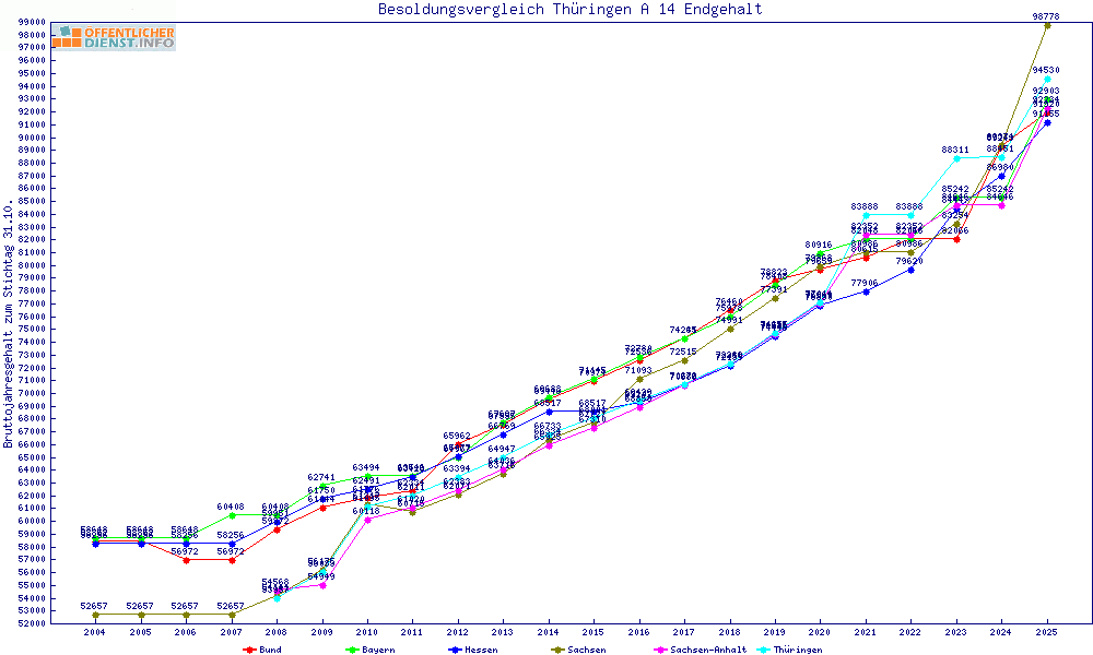 | Besoldungsvergleich A 14 im Jahr 2025 | Anfangsgehalt | ||||||