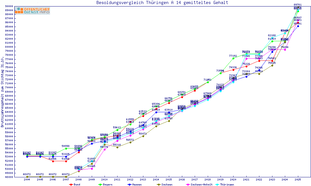 | Besoldungsvergleich A 14 im Jahr 2025 | gemitteltes Gehalt | ||||||