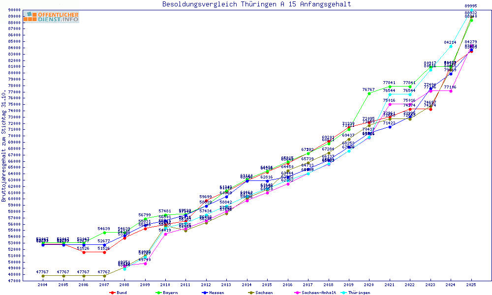 | Besoldungsvergleich A 15 im Jahr 2025 | Anfangsgehalt | ||||||
