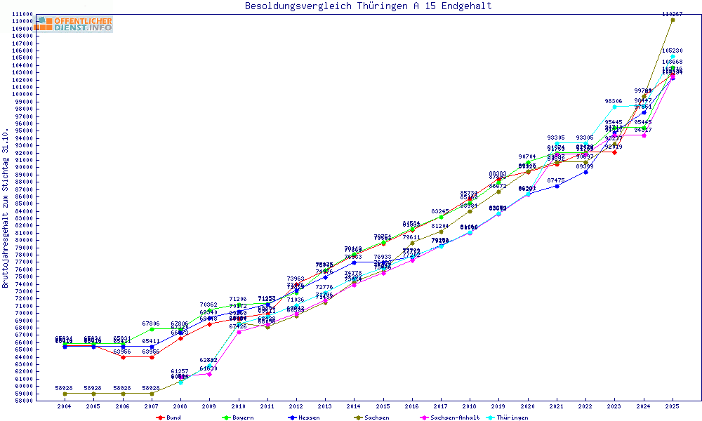 | Thüringen | 105.230 € | +5012 € | +5.0% | 18 Jahre | ||||