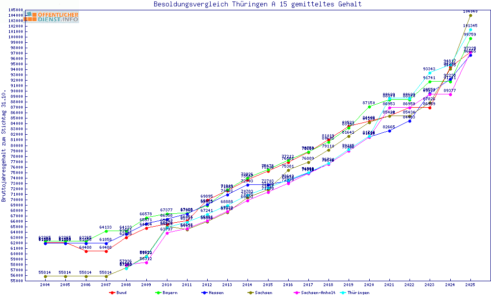 | Besoldungsvergleich A 15 im Jahr 2025 | gemitteltes Gehalt | ||||||