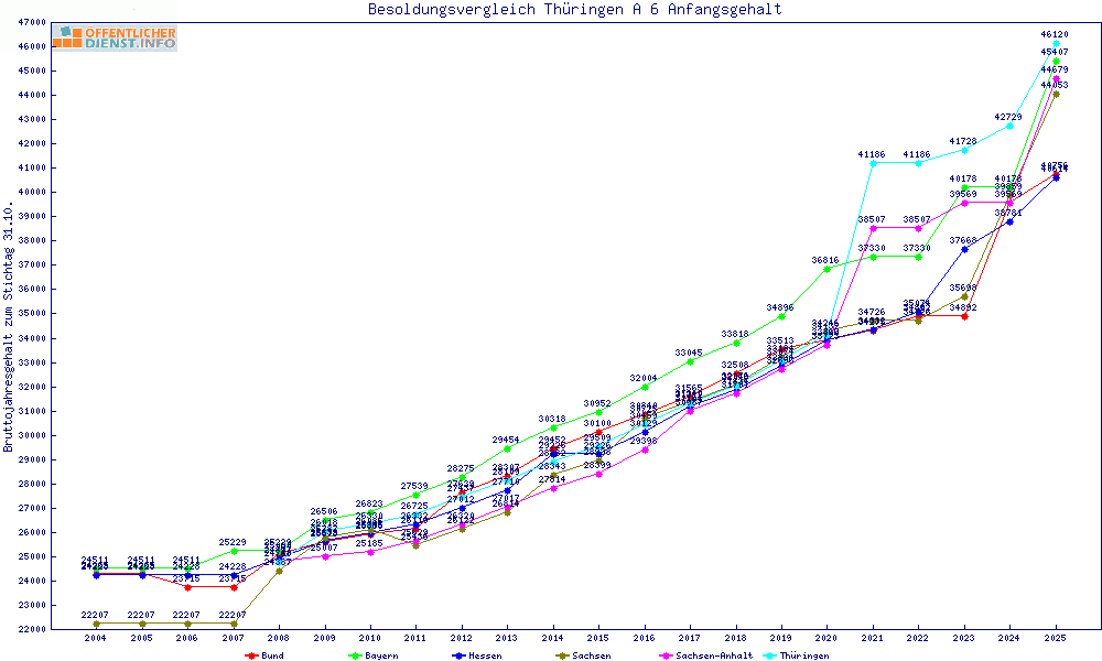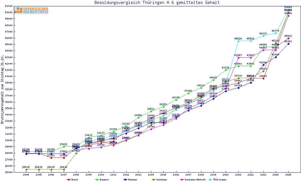 | Besoldungsvergleich A 6 im Jahr 2025 | gemitteltes Gehalt | ||||||