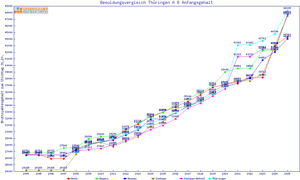 | Besoldungsvergleich A 8 im Jahr 2025 | Anfangsgehalt | ||||||