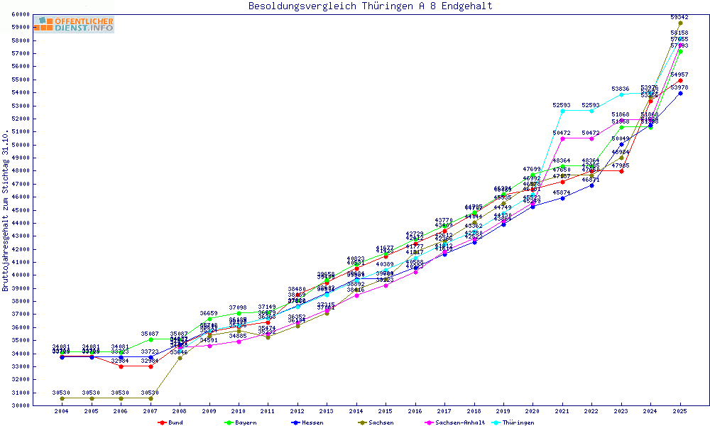 | Besoldungsvergleich A 8 im Jahr 2025 | Endgehalt | |||||||