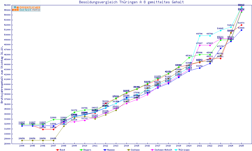 | Besoldungsvergleich A 8 im Jahr 2025 | gemitteltes Gehalt | ||||||