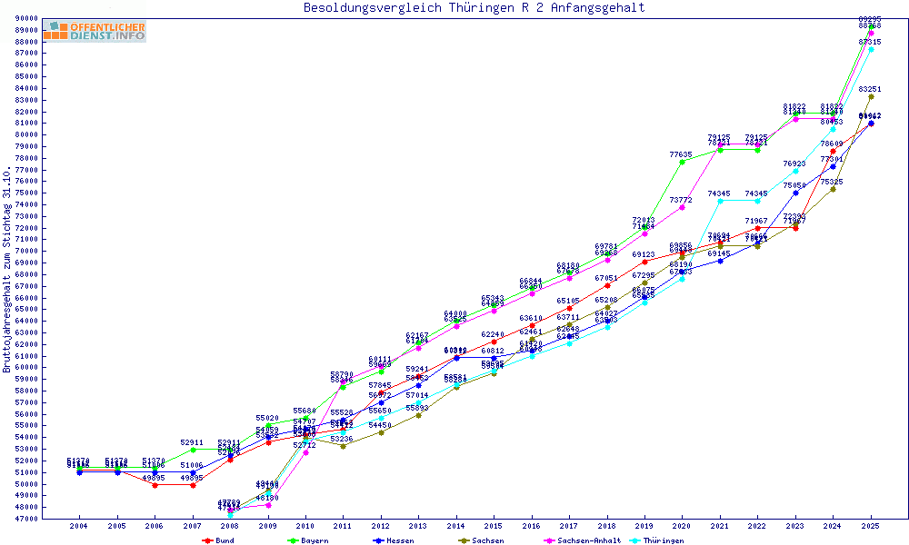 | Besoldungsvergleich R 2 im Jahr 2025 | Anfangsgehalt | ||||||