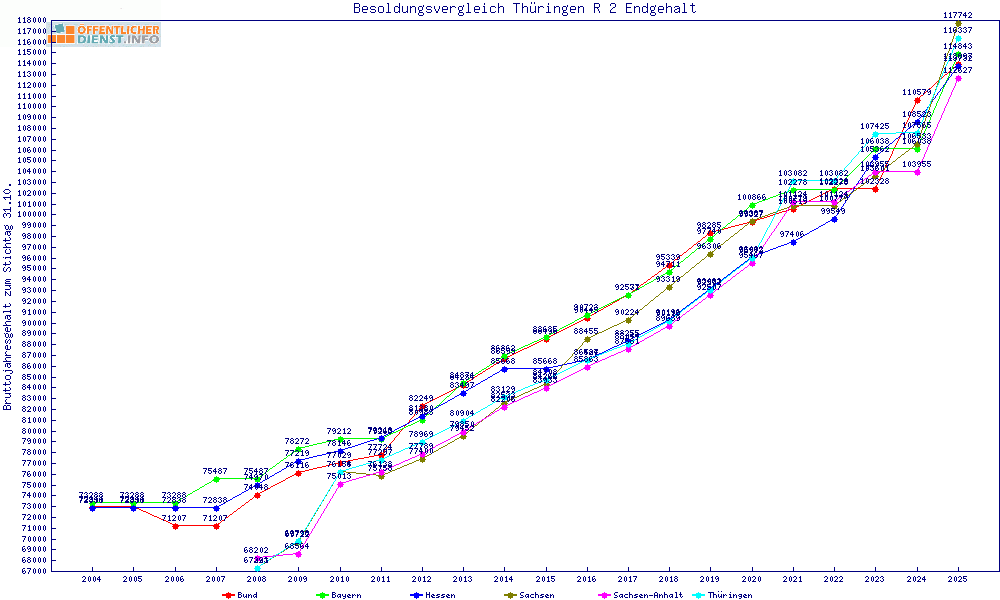 | Besoldungsvergleich R 2 im Jahr 2025 | gemitteltes Gehalt | ||||||